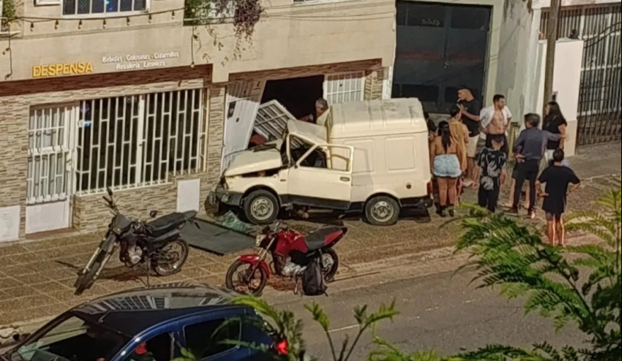 Por causas que se tratan de establecer, el conductor de una Fiat Fiorino blancaperdió el control del vehículo, se desvió de avenida Ramírez y terminó chocando contra el garage de una vivienda.