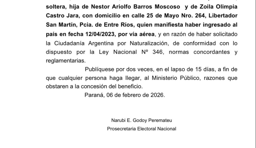 EDICTO BARROS CASTRO, NELY PRISCILA