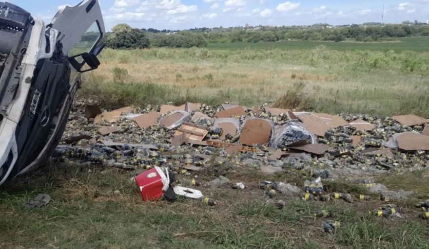 Un nuevo accidente se produjo este martes en la ruta 11, en proximidades de la concesionaria Folmer, en cercanías de Victoria. En este caso el siniestro involucró a un camión que transportaba botellas de una marca de fernet, que producto del impacto quedaron tendidas en la banquina.